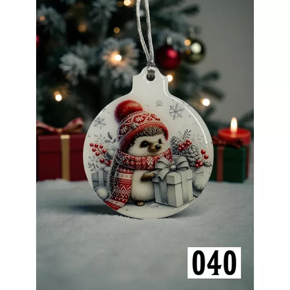Christmas Tree Ornaments Hedgehog with grey present