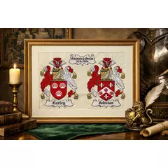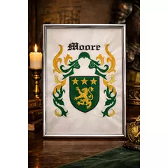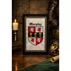 Celebrate your family history with a bespoke embroidered family crest , handcrafted in Ireland by Kildare-based artisan Kevin Earley . This premium edition is meticulously stitched to order using metallic embroidery thread and an enhanced stitch density, resulting in a striking,...