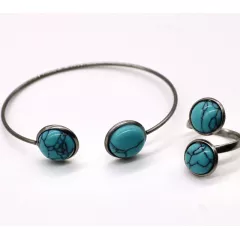 Semi-precious stones on bracelets and stainless steel ring, adjustable size  Organza gift bag included