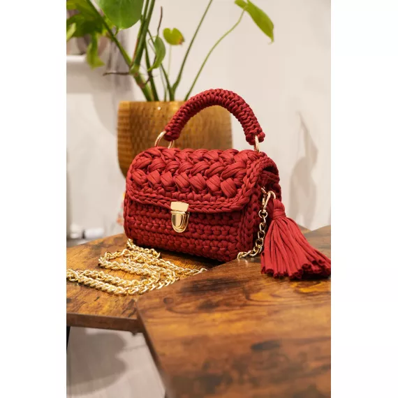 This handcrafted red crochet handbag is a timeless statement piece, designed for effortless everyday elegance. Individually handmade using premium yarn, it features a beautifully structured silhouette, intricate braided crochet detailing, and a secure gold-tone clasp for both style and practicality. A sleek chain strap allows for versatile wear, whether carried on the shoulder or as a crossbody bag.