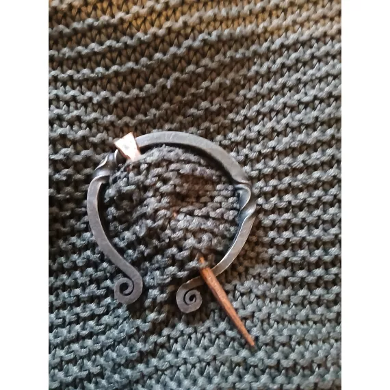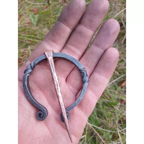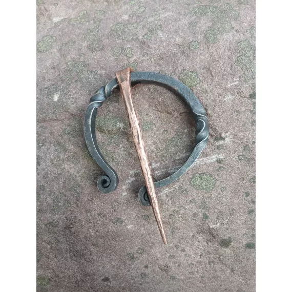 This stunning hand-forged Celtic brooch is crafted from solid iron and copper, blending ancient tradition with timeless artistry. Inspired by early Irish penannular designs, it reflects the heritage of the Celts—where such brooches were not only decorative but also symbols of status, craftsmanship, and identity.