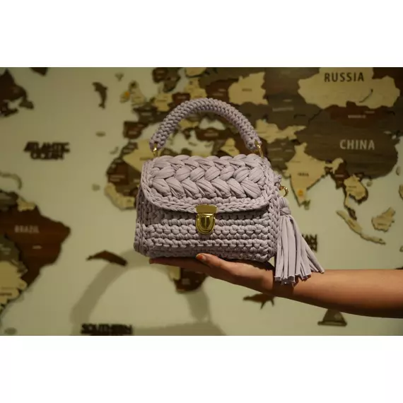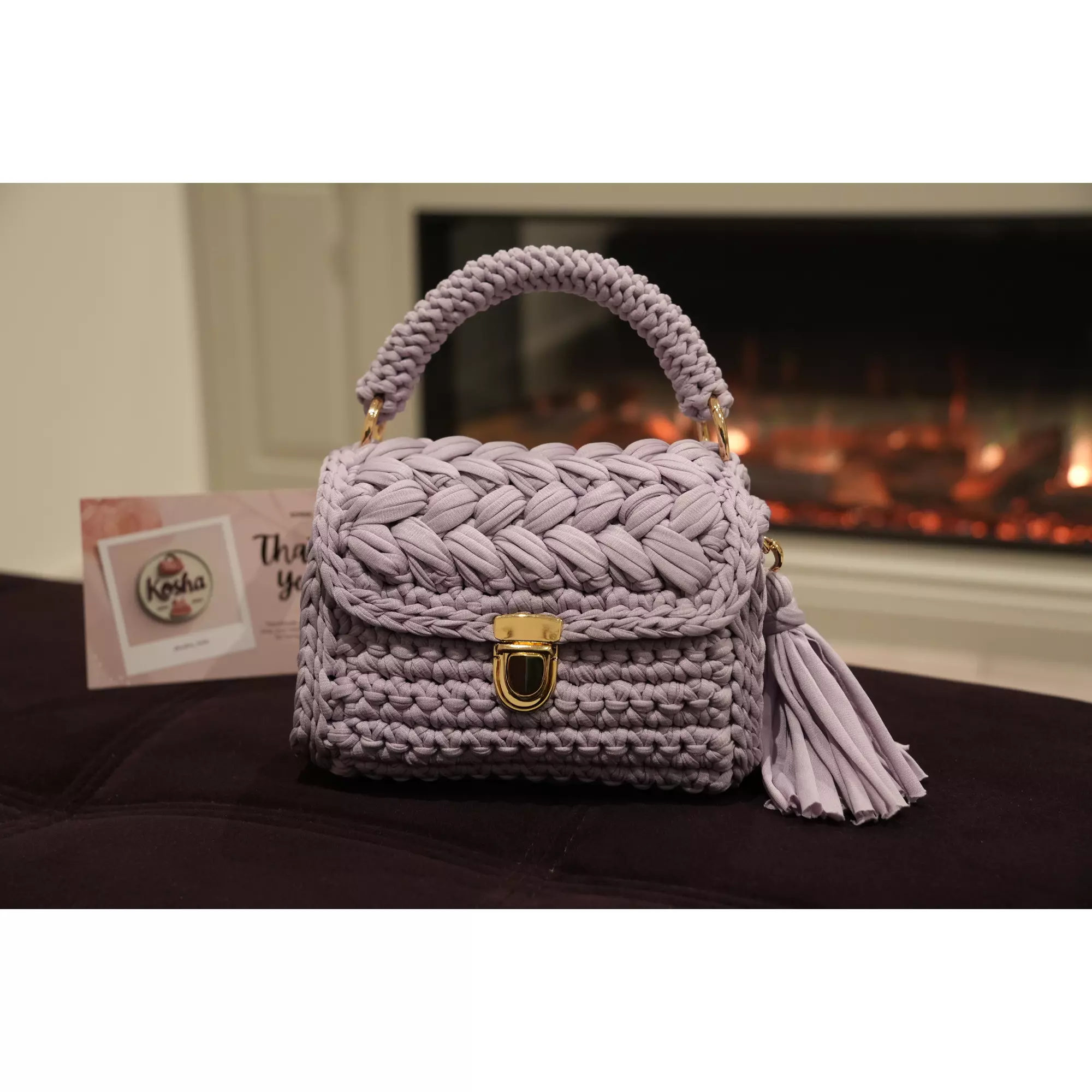Luxury Lilac Crochet Handbag | Top Handle Purse with Tassel & Gold Lock | Handmade in Ireland