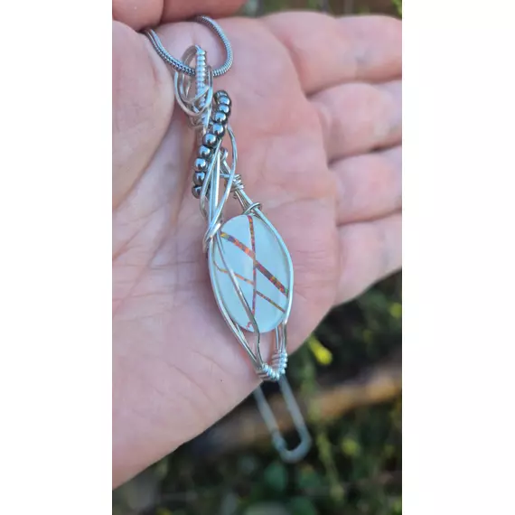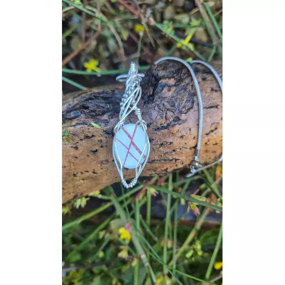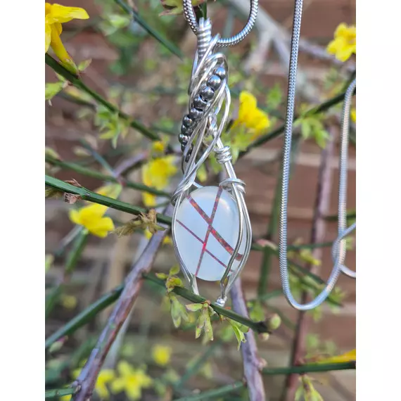 Crossfire Opal Pendant — Wire Wrapped in Silver | 22" Stainless Steel Chain