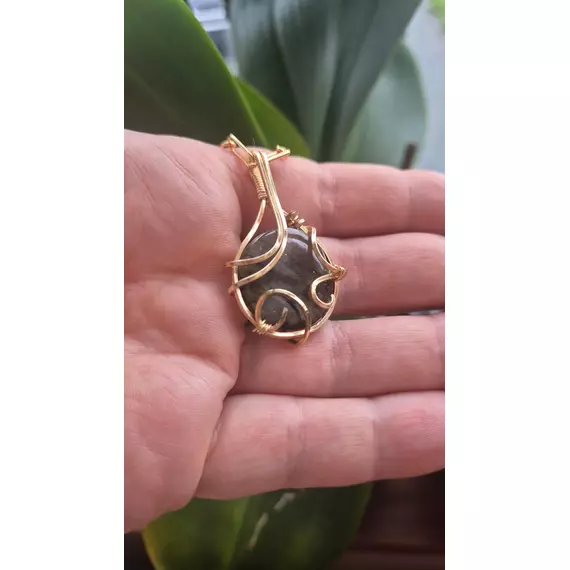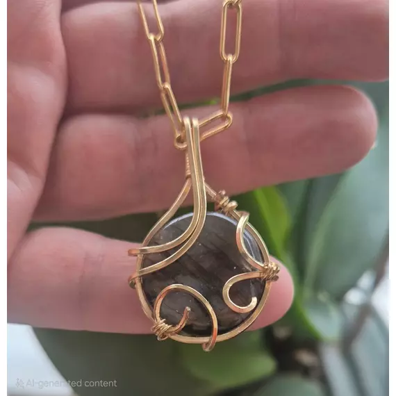 Gold Filled Labradorite Necklace – Wire Wrapped Pendant on Paperclip Chain