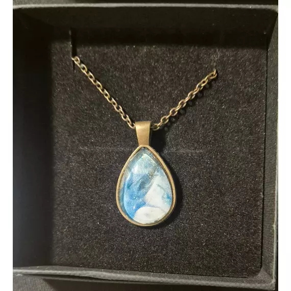 This teardrop pendant features an original hand-painted artwork, sealed beneath a smooth glass cabochon and set in an antique bronze bezel. No two are ever the same — each piece holds its own quiet movement of colour, like light shifting across water or sky.