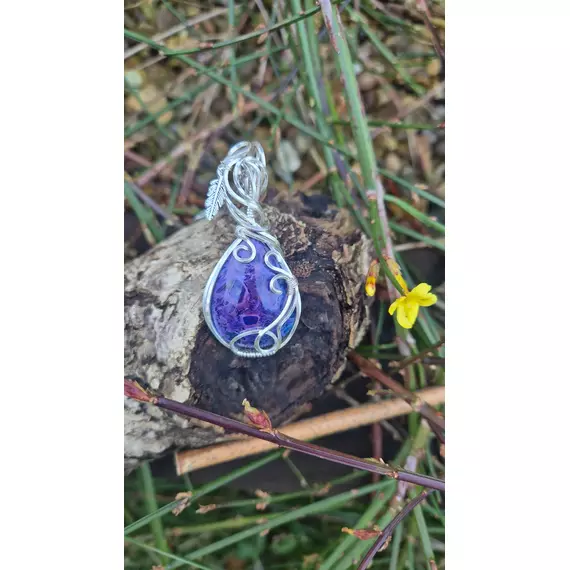 Hand-wrapped in flowing silver-plated wire with sculptural curls and finished with a delicate feather charm, the design blends organic texture with mystical, fantasy-inspired elegance. The natural grain of the palm root creates swirling, abstract patterns, ensuring every pendant is completely one of a kind.