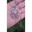 Moonstone sits at the heart of the piece - serene and calm. Above it, labradorite flashes electric blue when the light hits it.