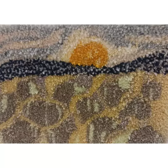 Created using the traditional tufting technique, the work combines tactile texture with abstract design, inviting the viewer to both see and feel the movement of the landscape.