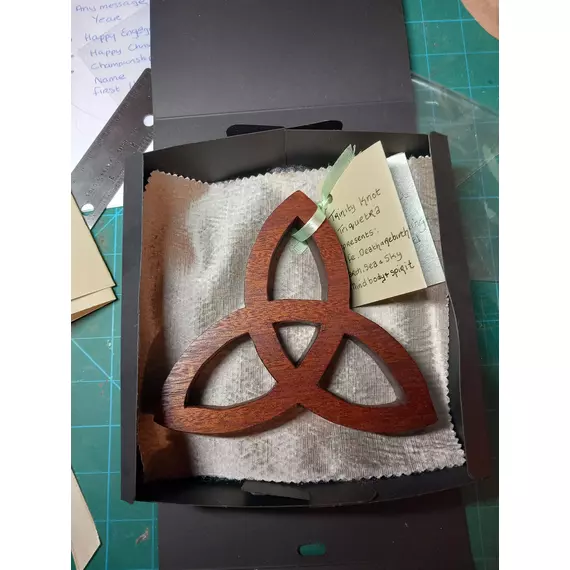 This handcrafted collection of traditional Celtic Knots symbol is made from rich mahogany and finished by hand to highlight the natural warmth and grain of the wood. Inspired by ancient Celtic desgin, each knot is formed from a continuous, unbroken line, symbolising eternity, balance, and the interconnected nature of life.