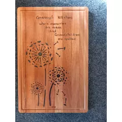 Hand-burned pyrography chopping board featuring a carefully drawn-out image across natural wood grain. The lettering flows along the board, creating a rustic and warm kitchen piece that is both decorative and functional.  Each design is individually burned by hand, making every board unique....