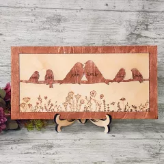 This is such a sweet gift for anyone in your life, but especially a Mama or Grandma. Each birdie holds a place for a loved one. Backer has been done in a natural birch with floral engraving, overlayed with a beautiful rosewood complete with birds. Can hold up to 6 birds. Size 30x15cm