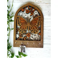 Introducing our beautiful Butterfly Arch Wooden Key Holder, perfect for adding a touch of elegance to your home decor. This stunning piece is made from 3 layers of high quality plywood, intricately laser cut to create a delicate butterfly arch design. Each key holder is meticulously hand painted...
