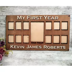 The Baby's First Year Personalised Handcrafted Wooden Photo Frame is a generously sized frame, measuring 48x26 cm. This means that it's large enough to make a statement on your wall or mantelpiece, while still being versatile enough to fit in with any home decor. This beautifully designed photo...