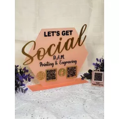 Let's get social sign, acrylic social media sign, sign for small business owner, TikTok username display This social media sign is laser engraved, painted and cut from 3mm acrylic. There is no vinyl so it won't fade or peel off. This sign displays your username (s) on your desired social media...