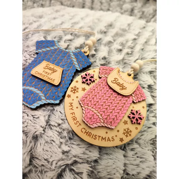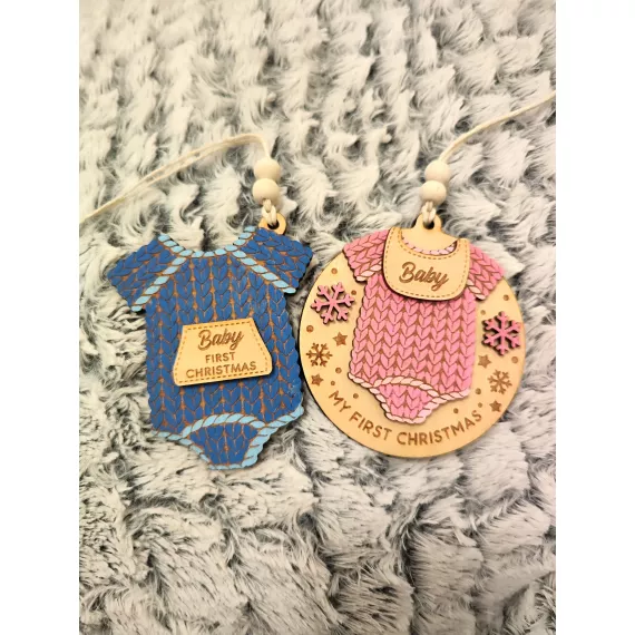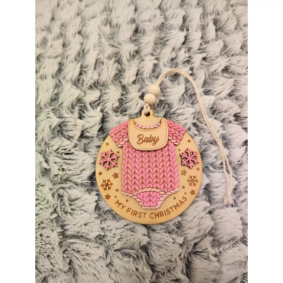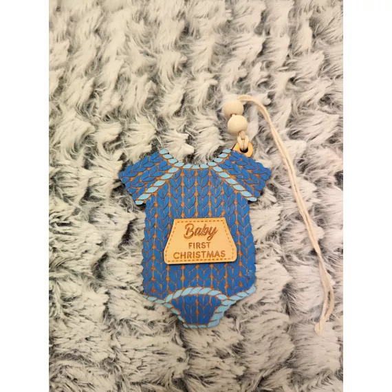 Celebrate the joy of Baby's first Christmas with this adorable Christmas tree ornament. Crafted with love and care, this ornament captures the enchantment of this special milestone. Hang it on your tree to create lasting memories of your little one's first holiday season. It's a perfect keepsake to cherish for years to come.