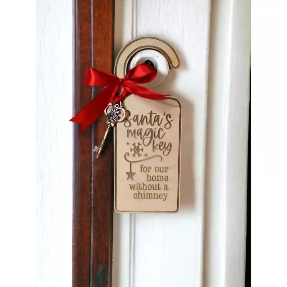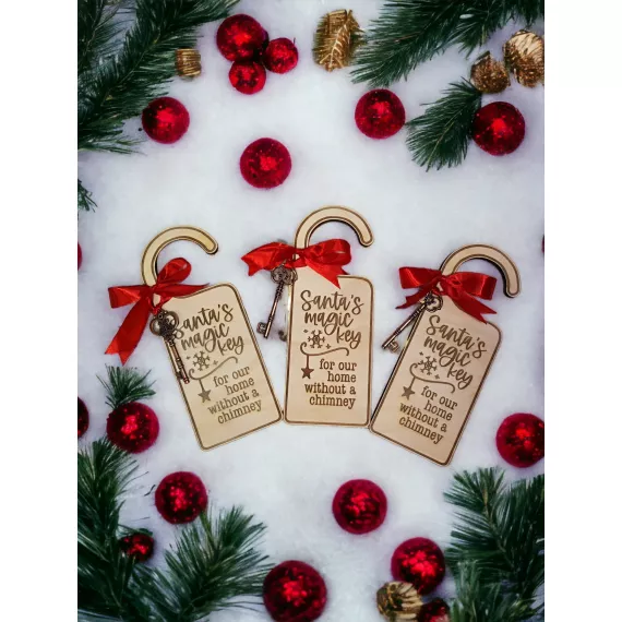 Transform your door into a festive gateway for the holiday season with our charming Wooden Christmas Door Hanger – "Santa's Magic Key." Cut with precision on laser cutting machine a, this delightful hanger features a rustic wooden design adorned with intricate details. Hang it proudly on your door, and let the enchanting spirit of Christmas welcome guests. The whimsical key symbolizes the magic that brings Santa to your home, making it a heartwarming addition to your seasonal decor. Embrace the joy of the holidays with this unique and timeless decoration.