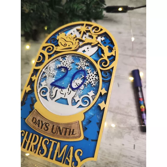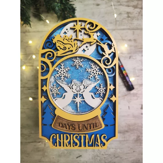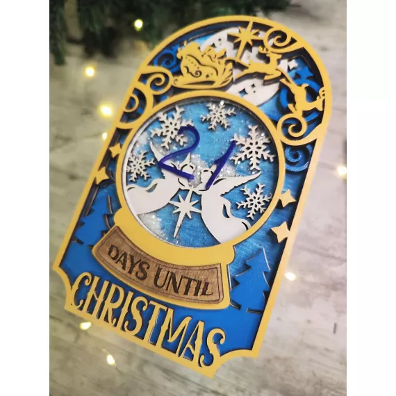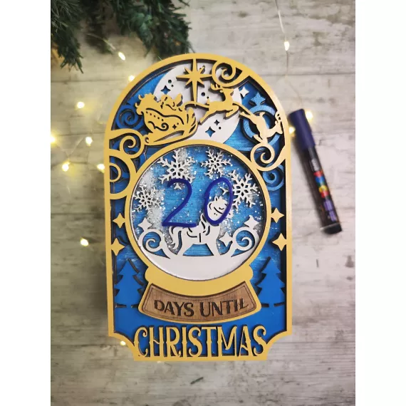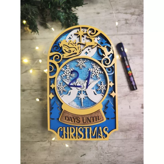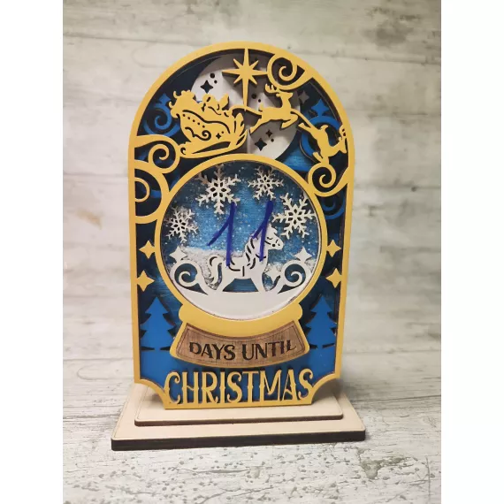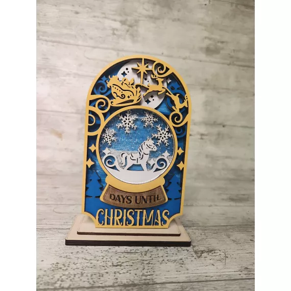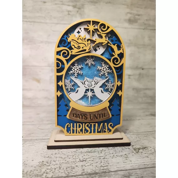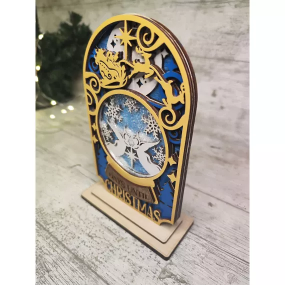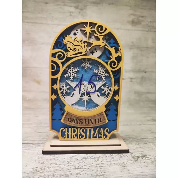 Count down to Christmas in style with our festive Christmas Shaker Countdown! Laser cut from high-quality plywood, this piece features 5 layers of intricate designs and a shaker ornament to add some festive fun. Shake the ornament to see glitter dance around. Add an optional stand to display the countdown on your mantle or table. This unique gift is perfect for anyone looking to add a touch of holiday cheer to their home decor.