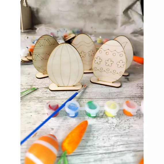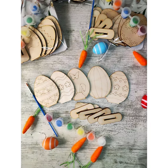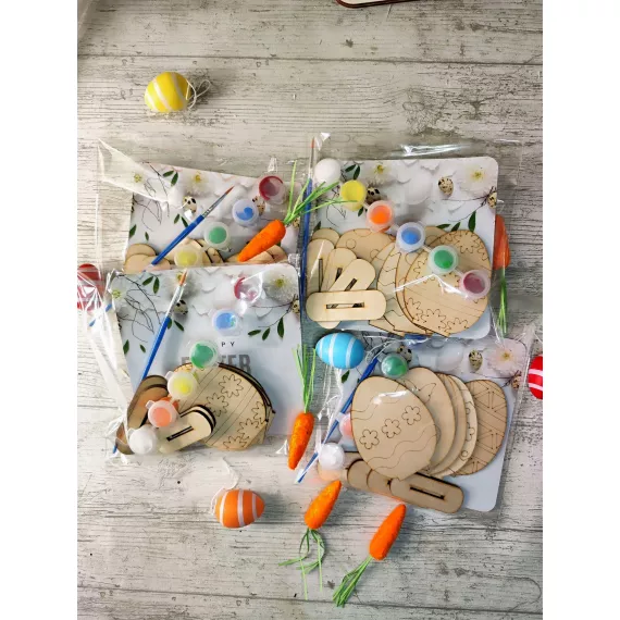 Let the kids help you with the Easter decor! Five eggs per kit, it includes 6 colours non-toxic acrylic paint, a brush and stand for every egg.
