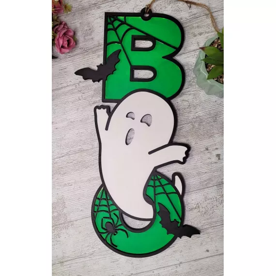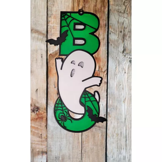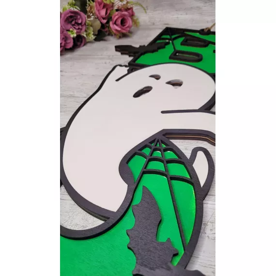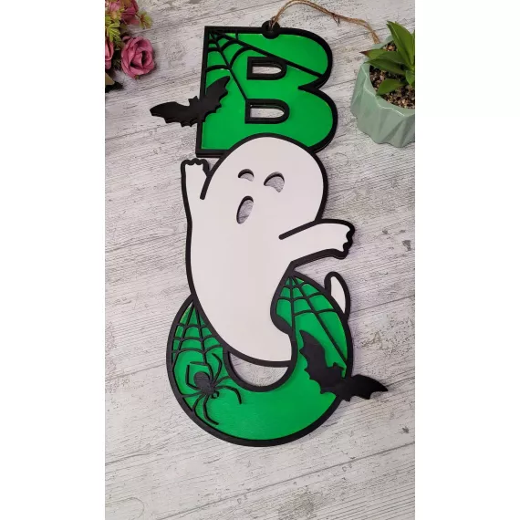 This is a 3D sign for Halloween featuring a playful Ghost.