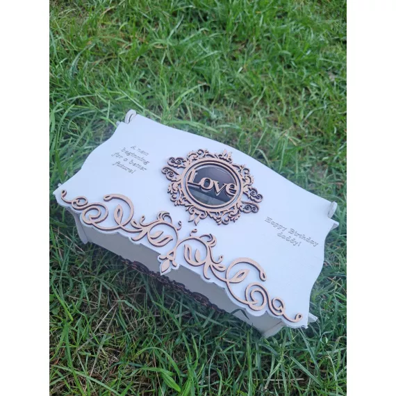 This unique personalised rustic box can be used for any smaller items such as photos, jewelry, makeup, trinkets and more.