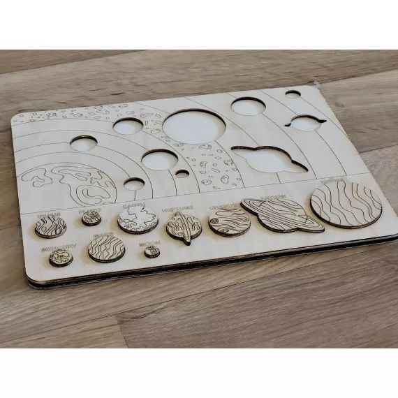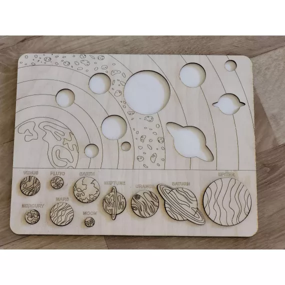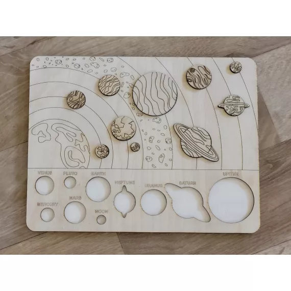 Solar system puzzle, made from high quality birch plywood. Perfect to keep child busy on summer time.