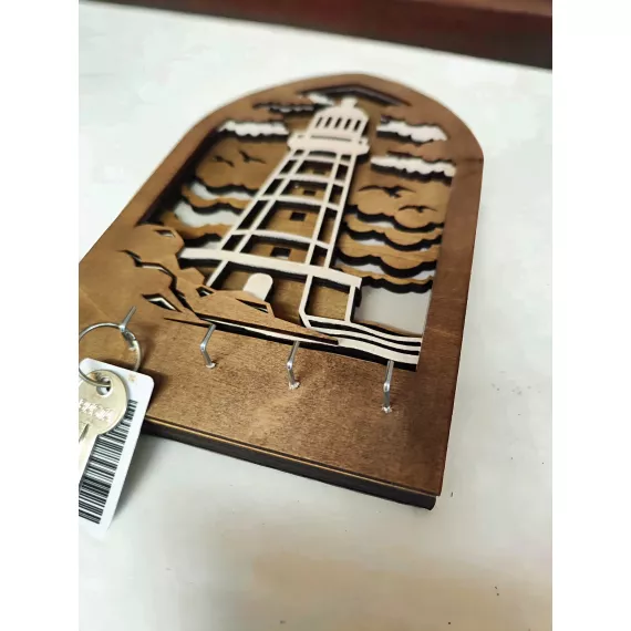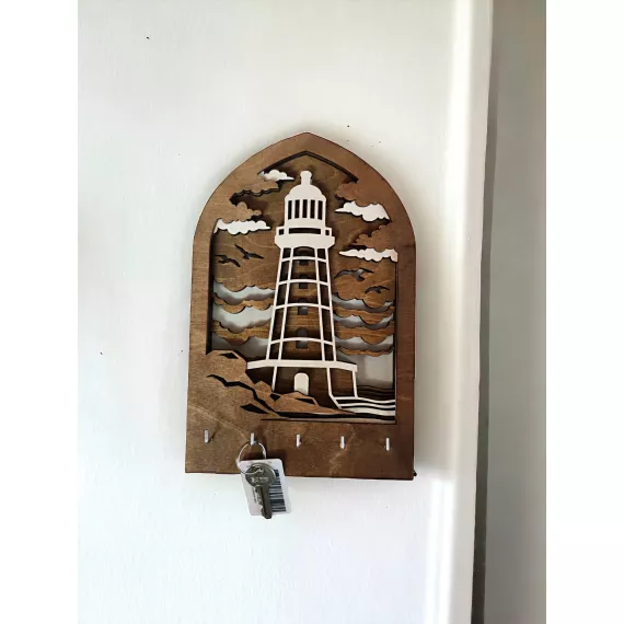 Introducing our stunning Lighthouse Arch Wooden Key Holder, the perfect addition to any home decor. Crafted with precision using 3 layers of high quality plywood and hand painted with exquisite detail, this key holder is both durable and stylish. Measuring at 17x26cm (6.7x10.3 inches), it is the ideal size to hang in your entryway or kitchen for easy access to your keys. The lighthouse design adds a coastal charm to your space, making it a great gift for those who love the ocean. Keep your keys organized and add a touch of elegance to your home with our Lighthouse Arch Wooden Key Holder.