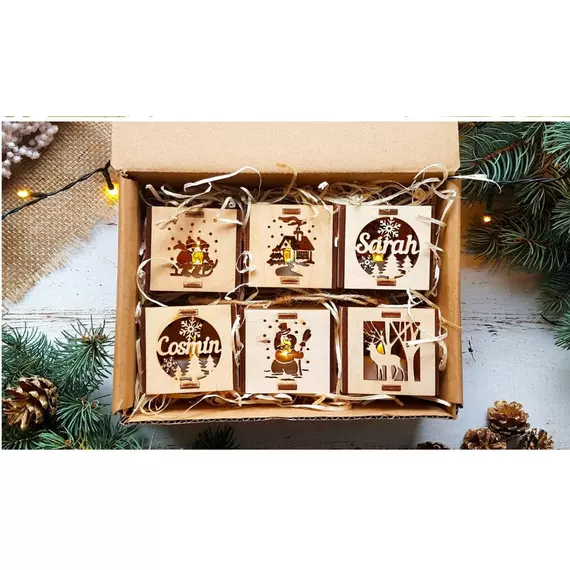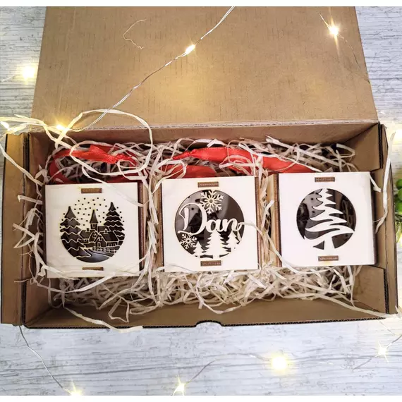 You can chose for box with one, three or six ornaments, personalised or non personalised.