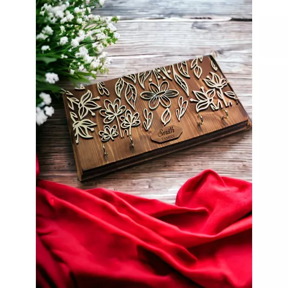 Bring a dash of natural beauty, organization, and visual depth to your home with the Personalised Wooden Key Holder "Wild Flowers" – a breathtaking fusion of form, function, and 3D design that sets it apart from the rest.