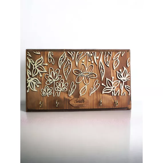 Introducing our  Personalised Wooden Key Holder "Wild Flowers" with a captivating 3D design, now available in a convenient size of 25x15cm – a delightful blend of functionality, natural beauty, and visual depth tailored to fit your specific needs. Crafted with precision and adorned with an enchanting three-dimensional composition, this key holder brings a touch of charm and elegance to your home decor like never before.