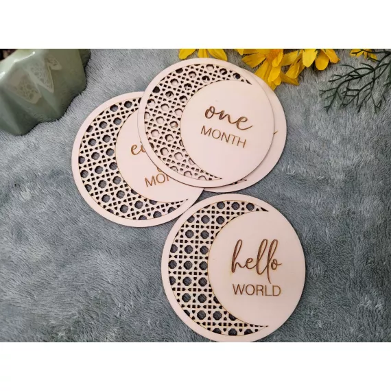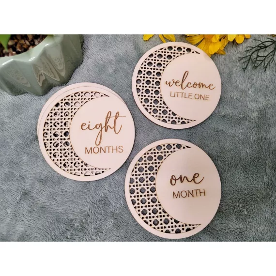 Wooden Baby Monthly Milestone Circles 1 Month to One Year Rattan design