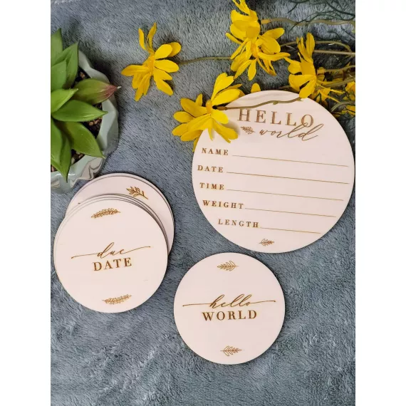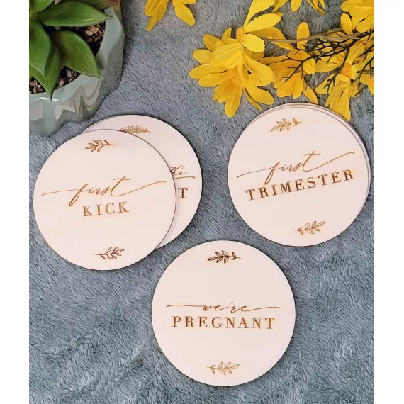 Your Wooden Pregnancy Milestone Disc Set Includes: