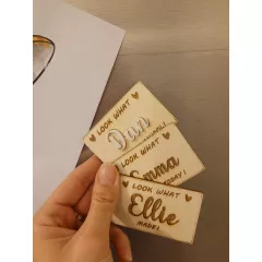 Personalised magnet “Look what” A good option to attach all the little one’s successes to the fridge. Available in two types: 1. Engraved name 2. Acrylic name Size 7x5cm