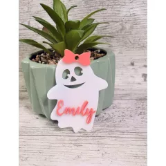 Cute Ghost Basket Tag,  Trick or Treat Bag Tag. These custom name tags are a very unique way to personalize your own Halloween bag this year!   Glasses can go on the girl ghost or the boy. Size approx 9x8 cm