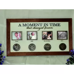 Personalised Family Photo Plaque Available with 1,2,3,or 4 photo frames. Please fill in the name for each frame. The clocks are only decorative, so please, if you want a specific time, please fill in the right with each name. Available in 3 sizes: Small 40x22cm Photo frame size :...