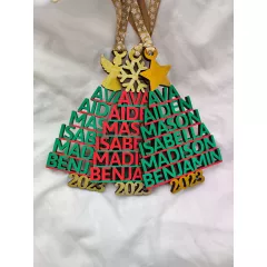 Personalised Family name 3D ornament.   Put it on the Christmas Tree to make this Christmas more special! This ornament fits from 2 to 15 names. Made from 2 layers of plywood. Size approx 10cm x 15cm