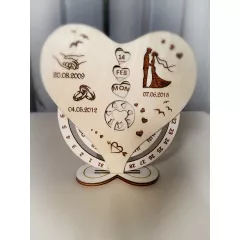 Perpetual calendar, a wonderful gift for Valentine’s Day. It is a beautiful memory and can be used year after year. Made from high quality 3mm birch plywood, laser cut. Size 26×26 cm