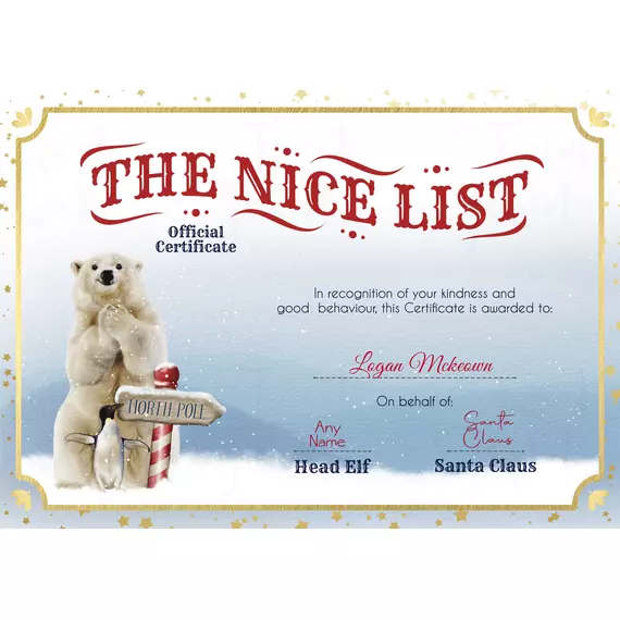 Arctic Nice list certificates/ Letters