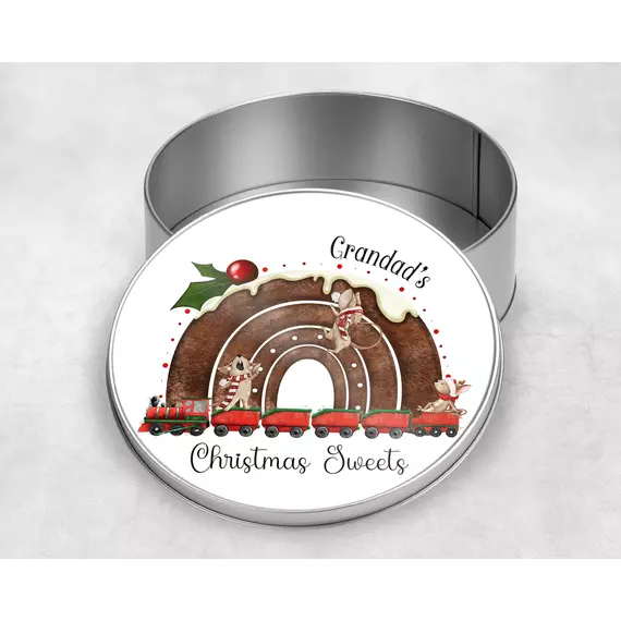 Christmas pudding rainbow train Round Tin