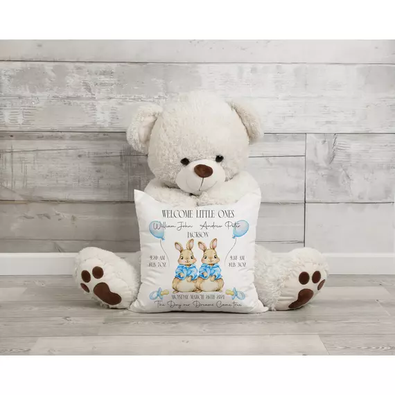Celebrate the arrival of a little one with our Personalised Bunny Baby Cushion. This adorable cushion is more than just a soft furnishing; it’s a keepsake that captures all the precious details of a baby’s arrival. Customise it with the baby’s name, weight, date and time of birth, and parent(s) names to create a heartfelt memento.