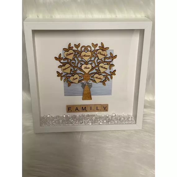 3) Our Wooden Family Tree is beautifully cut from 4mm thick wood and framed in a stunning deep box frame featuring a lovely deep white border surrounding the Family Tree.