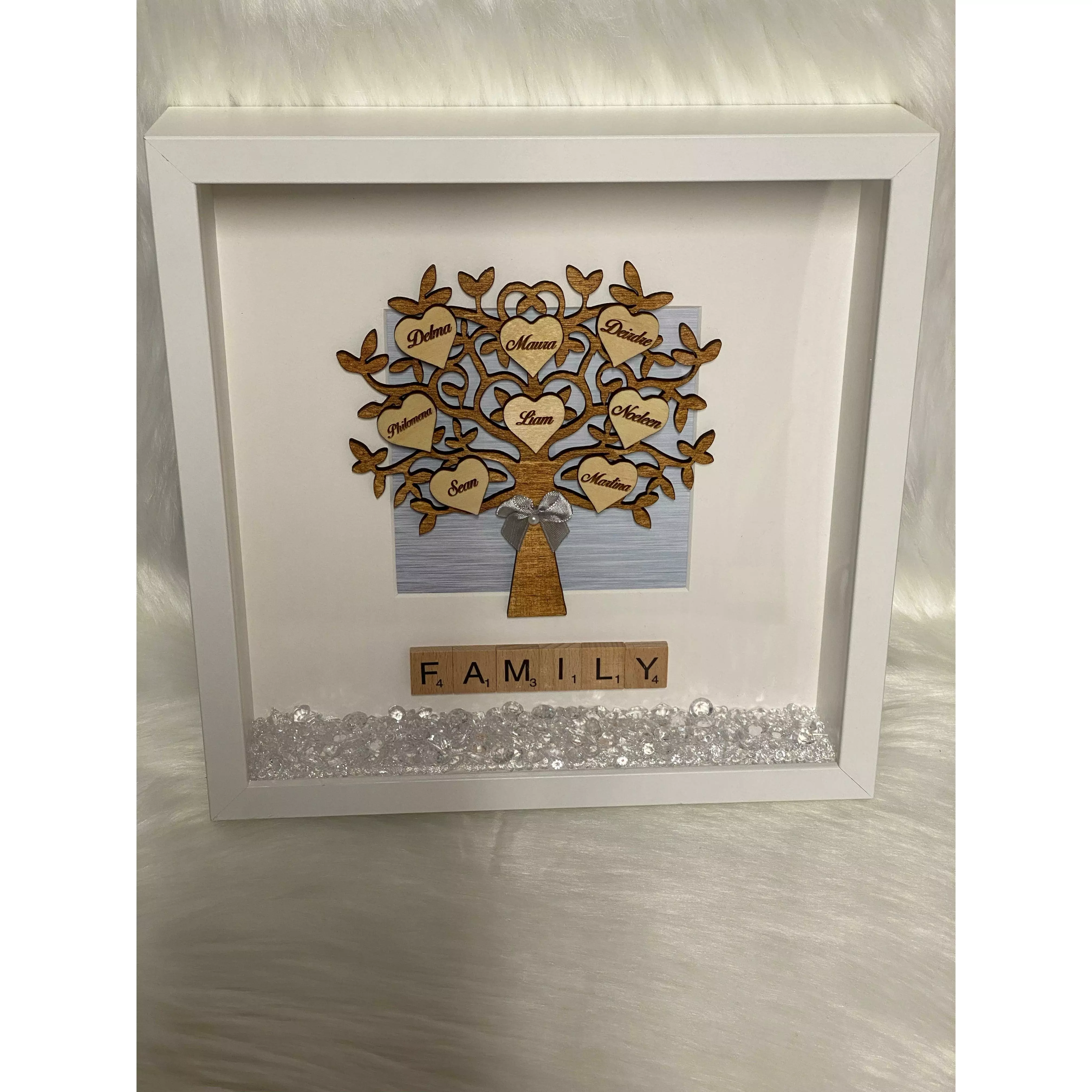 3) Our Wooden Family Tree is beautifully cut from 4mm thick wood and framed in a stunning deep box frame featuring a lovely deep white border surrounding the Family Tree.