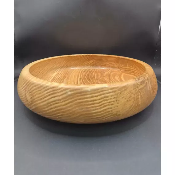 Experience the warmth of Irish craftsmanship with our hand-turned bowl made from sustainably sourced Donegal olive ash, prized for its rich olive-green and caramel streaks. The closed-form design (210 mm internal diameter × 70 mm height) creates a sculptural silhouette ideal for serving salads, fruit, or as a striking centerpiece. An elegantly undercut rim ensures a refined profile and comfortable grip, while the hand-embellished foot, carved with a delicate geometric motif, adds a unique artisan touch. Each bowl is finished with our signature Donegal beeswax blend, providing a durable, food-safe luster that accentuates the natural grain. Whether as a gift or for your own table, this wooden bowl combines functionality and heirloom quality that will be cherished for years.