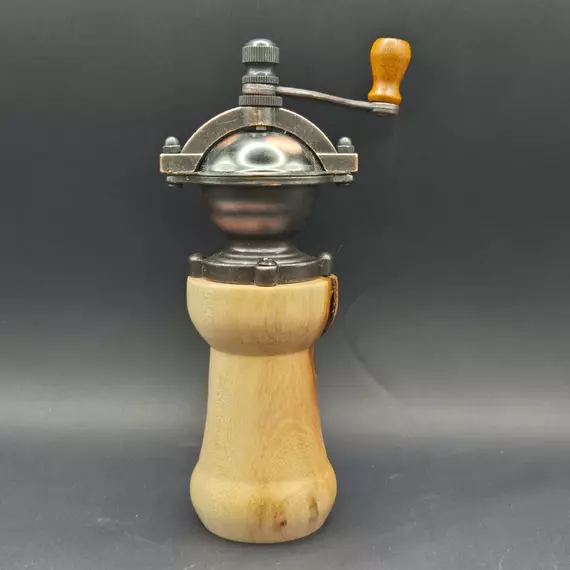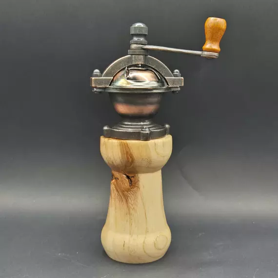 This woodturned pepper mill is handmade in Ireland from locally sourced Irish cherry wood, chosen for its rich grain and warm tones. Standing approximately 170mm tall and 60mm in diameter, it features an antique-style design with cast metal components for smooth, reliable grinding.