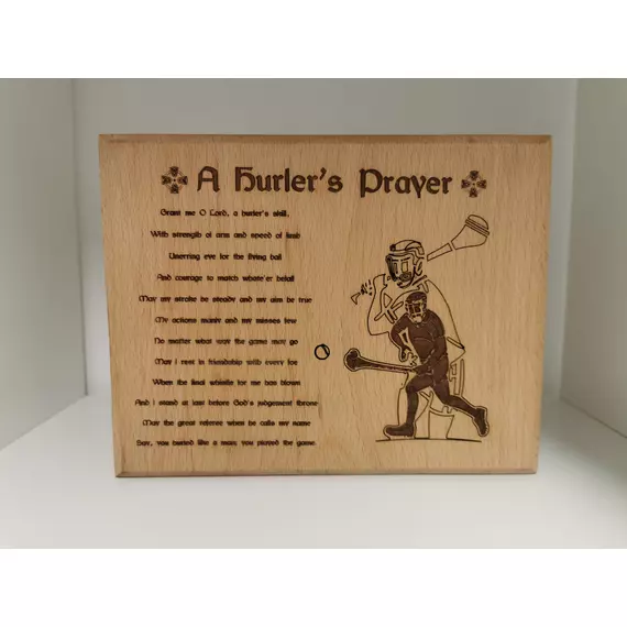 Honor the game and its traditions. Secure your piece of Hurling history with our Hurlers Prayer Beech wood plaque today.