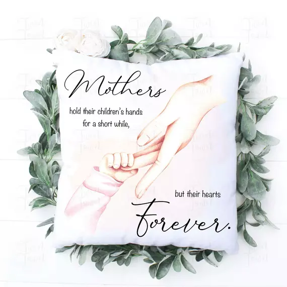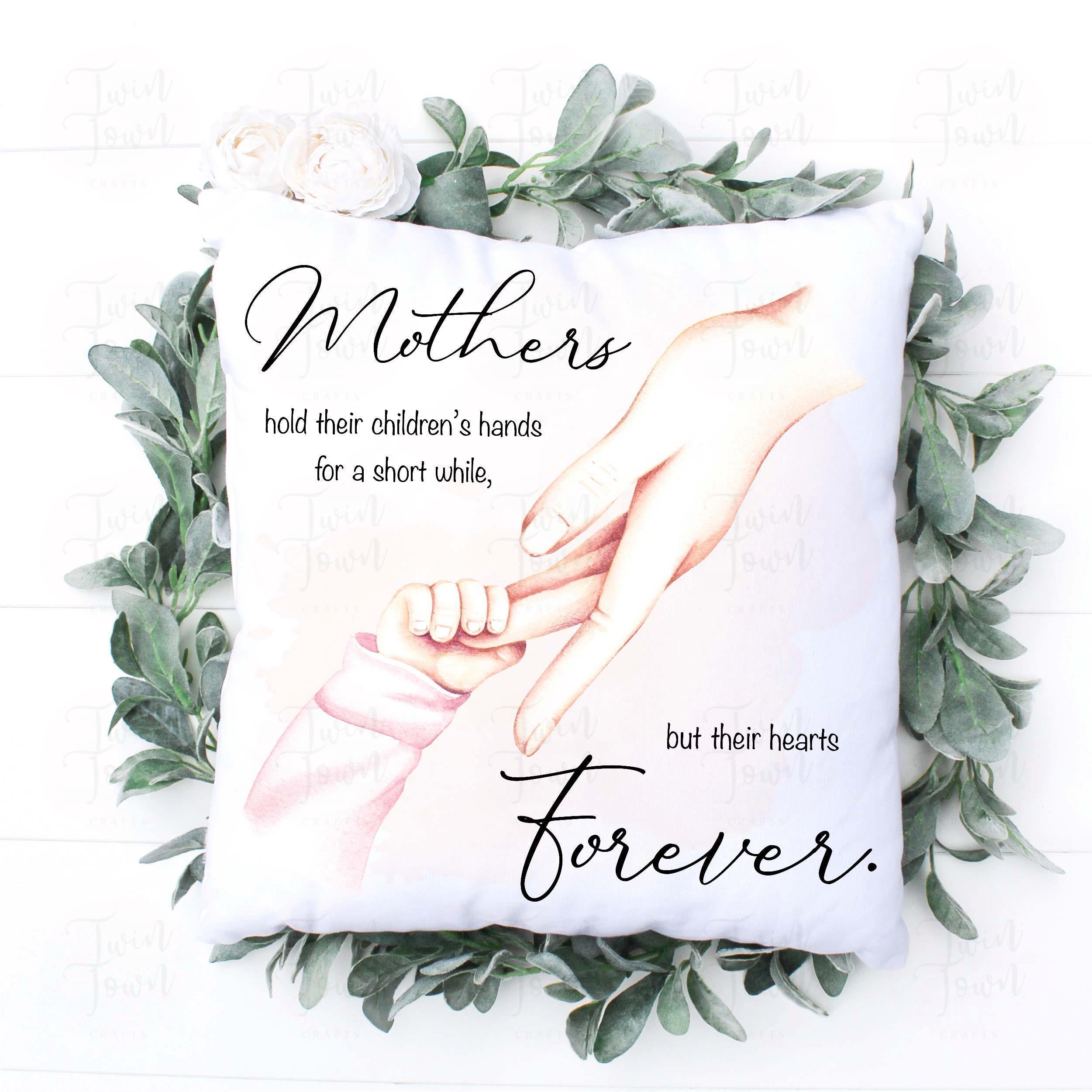 Mothers hold their childrens hands for a short while, but their hearts forever pillow