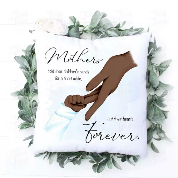 Mothers hold their childrens hands for a short while, but their hearts forever pillow
