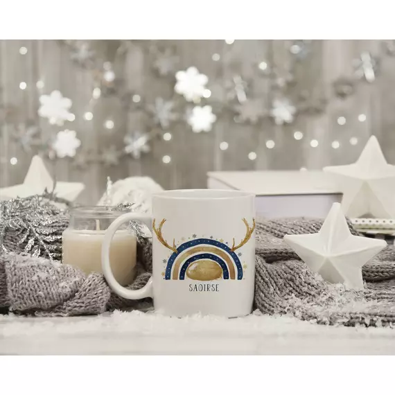 Navy and Gold/Navy and Silver reinbow Christmas mug