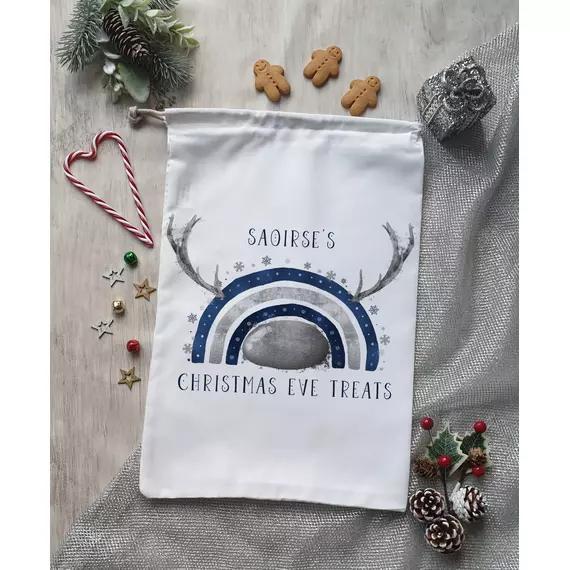 Personalised Navy and silver christmas reinbow christmas eve treat bag.