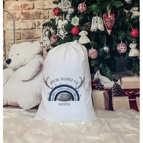 Navy and Silver/Navy and Gold reinbow christmas sack