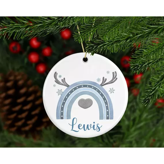 Personalised Blue Reindeer Rainbow Christmas Decoration